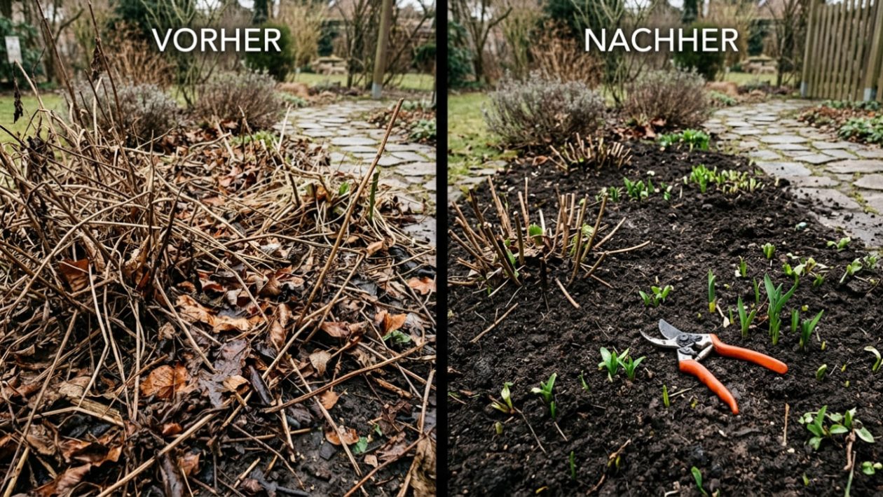 | 2. Das „Beet-Wecken“ (Lockern statt Umgraben) | Entfernen Sie alte, dicke Laubschichten von den Staudenbeeten. Wichtig: Graben Sie die Beete nicht um! Nehmen Sie nur einen Grubber oder eine Hacke und reißen Sie die oberste Erdkruste (die durch den Winterregen hart wurde) leicht auf. | Ein harter Boden lässt kein Frühlingswasser zu den Wurzeln. Das leichte Lockern bringt Sauerstoff an die Mikroorganismen. Der Boden erwärmt sich durch die dunkle Farbe schneller in der Sonne. |