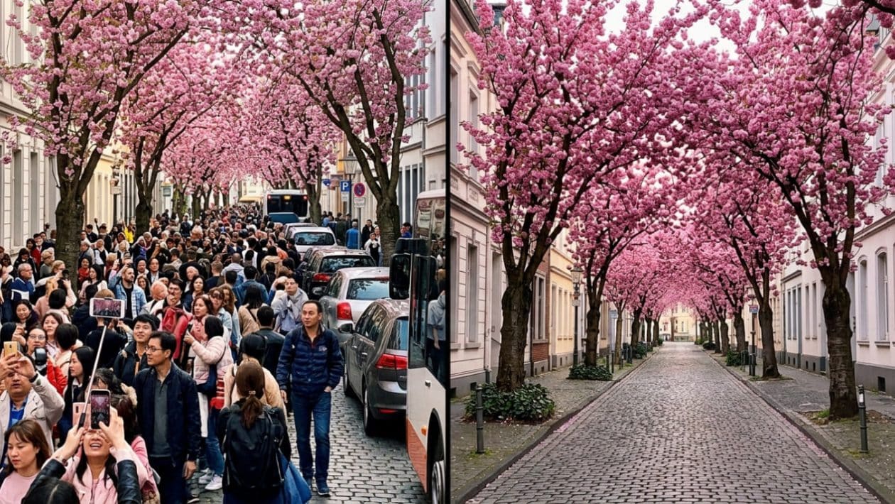 Ärgern Sie sich auch oft, wenn berühmte Sehenswürdigkeiten in der Realität völlig überlaufen sind und das erhoffte Foto zu einem einzigen Stress-Akt wird? Planen Sie für dieses Wochenende auch einen Trip unter das rosa Blätterdach von Bonn oder Berlin? Stellen Sie den Wecker und besiegen Sie die Massen durch frühes Aufstehen! Speichern Sie sich diesen knallharten Fotografie-Check ab und teilen Sie die ehrliche 7-Uhr-Regel bei WhatsApp oder in Facebook-Reisegruppen mit Ihren Freunden, damit der Ausflug zur Kirschblüte nicht in einer Enttäuschung endet.