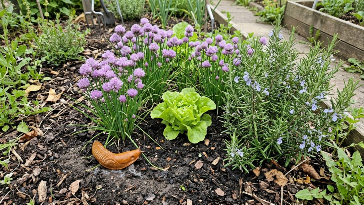 2. Die physikalische Barriere: Mediterrane Kräuter wie Thymian oder Rosmarin haben sehr harte, ätherisch-ölhaltige Blättchen. Für den weichen Fuß der Schnecke ist das Überkriechen dieser Pflanzen unangenehm.