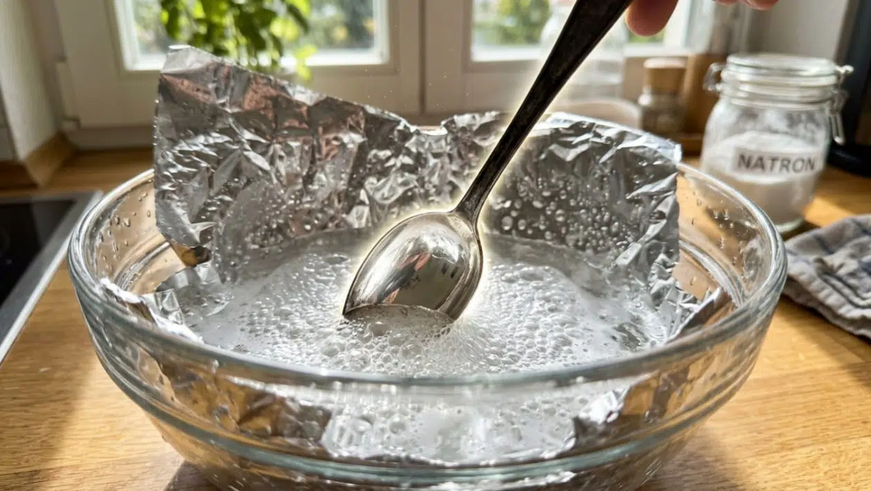 Anna probierte den Alufolien-Trick noch am selben Abend aus. Sie kleidete eine Auflaufform mit Folie aus, legte die Löffel und Gabeln hinein, streute Salz und Natron darüber und übergoss alles mit kochendem Wasser. Es zischte, es roch kurz nach Schwefel, und als sie die Löffel nach 30 Sekunden mit einer Grillzange aus dem heißen Wasser zog, traute sie ihren Augen kaum. Selbst aus den feinsten Rosen-Verzierungen am Griff war die schwarze Farbe komplett verschwunden. Das Besteck glänzte wie am ersten Tag, und ihre Fingernägel blieben makellos sauber.