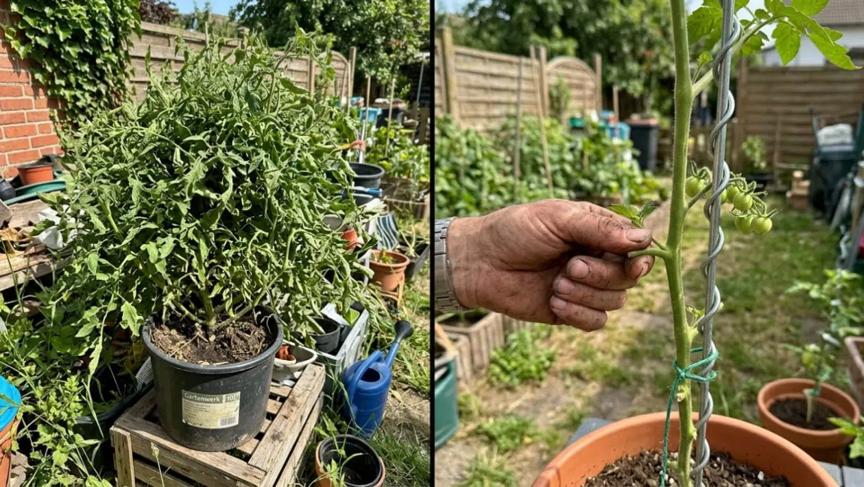 Herr Klein griff tief in seinen Tomaten-Dschungel und brach Hunderte dicke und dünne Geiztriebe radikal heraus, bis nur noch der Hauptstamm stand. Die Luft konnte wieder zirkulieren, der schwarze Pilz trocknete aus. Die Pflanze schickte ihre gesamte verbliebene Energie nun in die wenigen Blüten – und Herr Klein erntete im August gigantische, tiefrote Fleischtomaten.