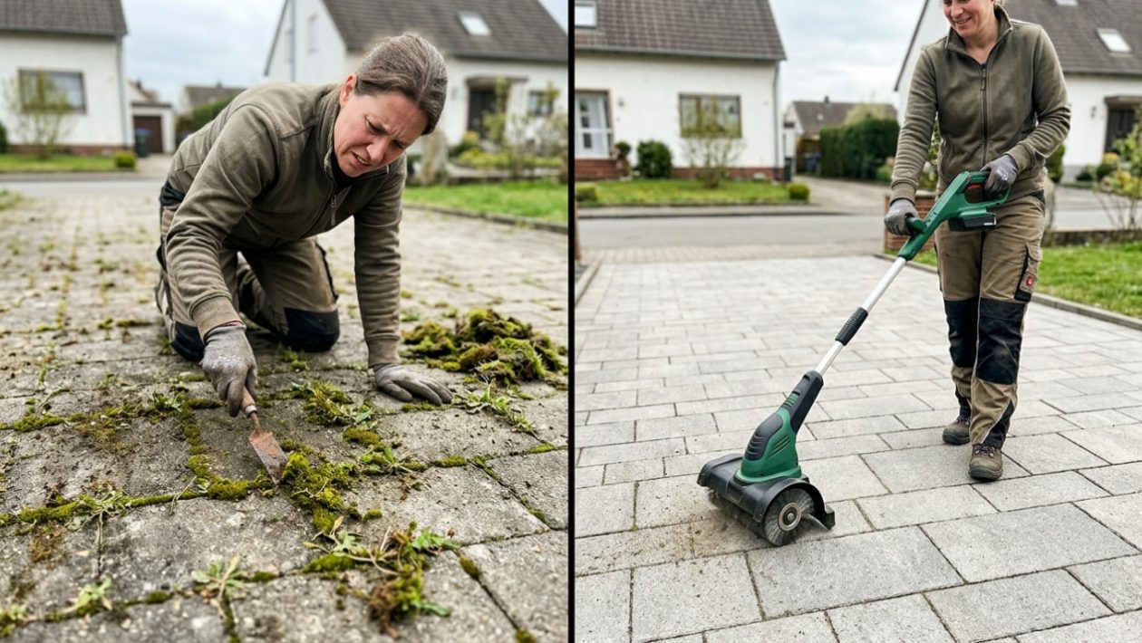 Es ist die unangefochtene Königsdisziplin der Gartenstrafen. Wer eine große Auffahrt, gepflasterte Gartenwege oder eine Steinterrasse besitzt, kennt das alljährliche Drama: Aus jeder noch so kleinen Rille sprießt hartnäckiges Gras, tiefer Löwenzahn und dichter, nasser Moosbelag. Die traditionelle Bekämpfung ist eine absolute Tortur für den Körper.