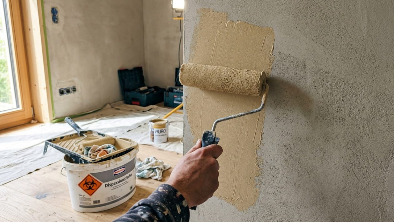 (Wichtiger Experten-Tipp: Wenn Sie von Dispersionsfarbe auf Kalkfarbe wechseln wollen, prüfen Sie Ihren Untergrund! Echte Kalkfarbe hält perfekt auf Gipsputz, Beton oder Raufaser. Auf extrem glänzenden, alten Lackschichten müssen Sie vorher oft eine mineralische Grundierung streichen).